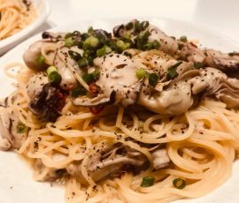 生ガキをお召し上がりいただいた後は牡蠣の出汁をたっぷりと絡めたパスタをお楽しみいただきました。