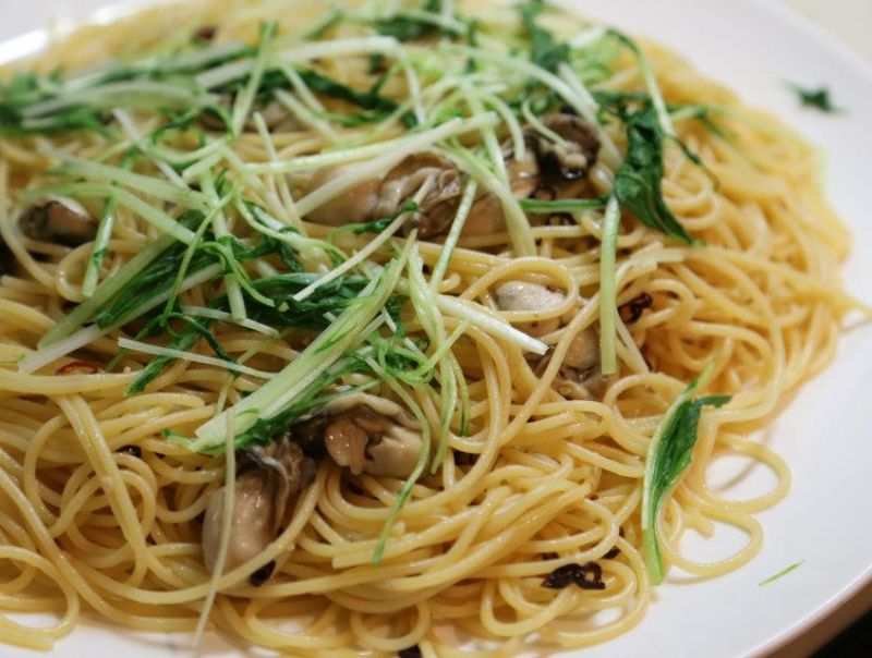 コンフィにしたオイスターとからめてパスタをご提供します。